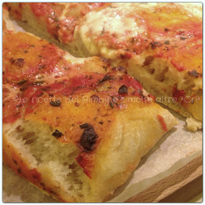 Risultato??? STRABILIANTE , una pizza alla romana, in teglia ben lievitata, alta, morbida con tantissimi alveoli ( sono i buchi che si fanno nell'impasto grazie all'aria e all'acqua in esso contenute!) .